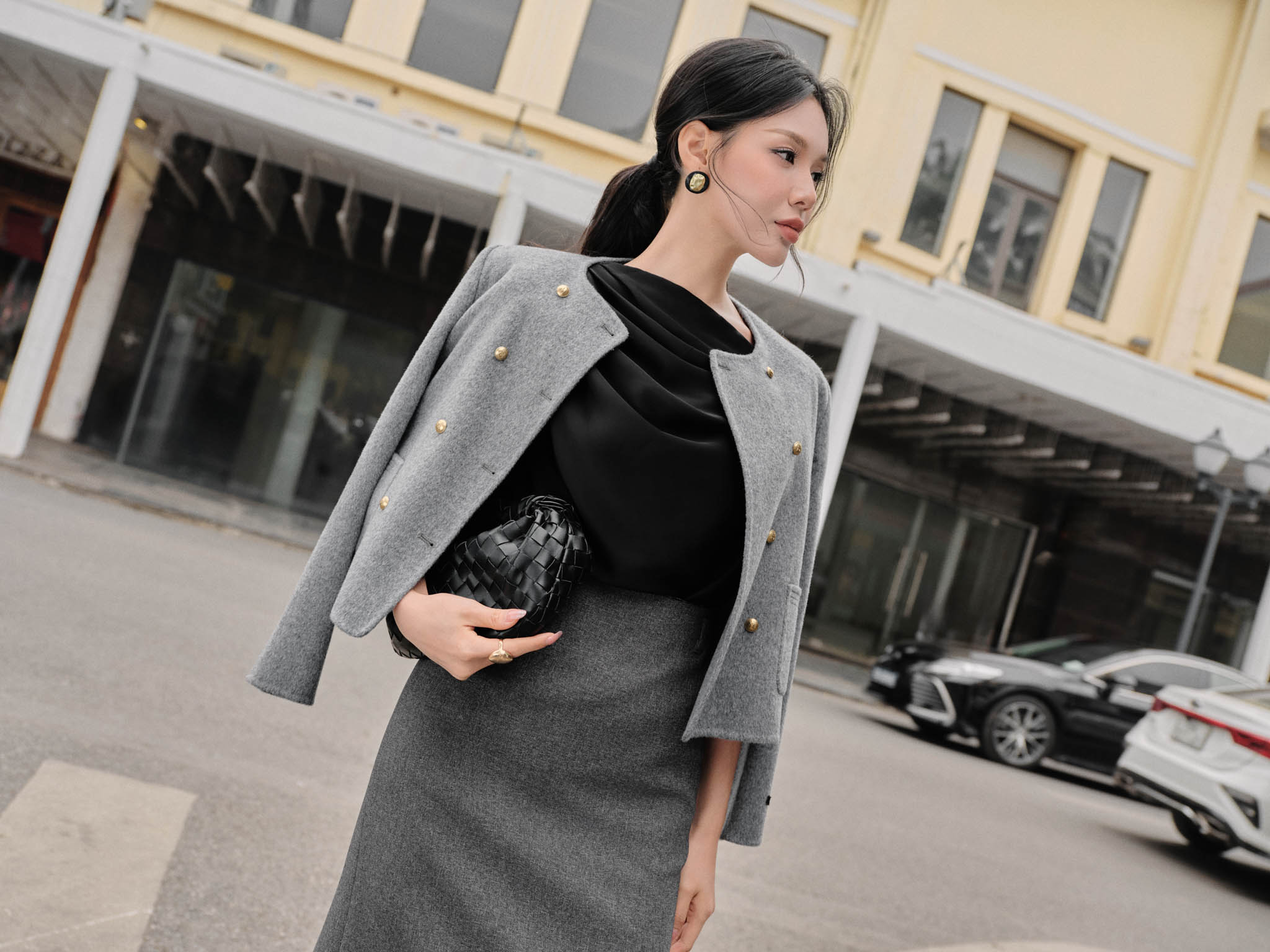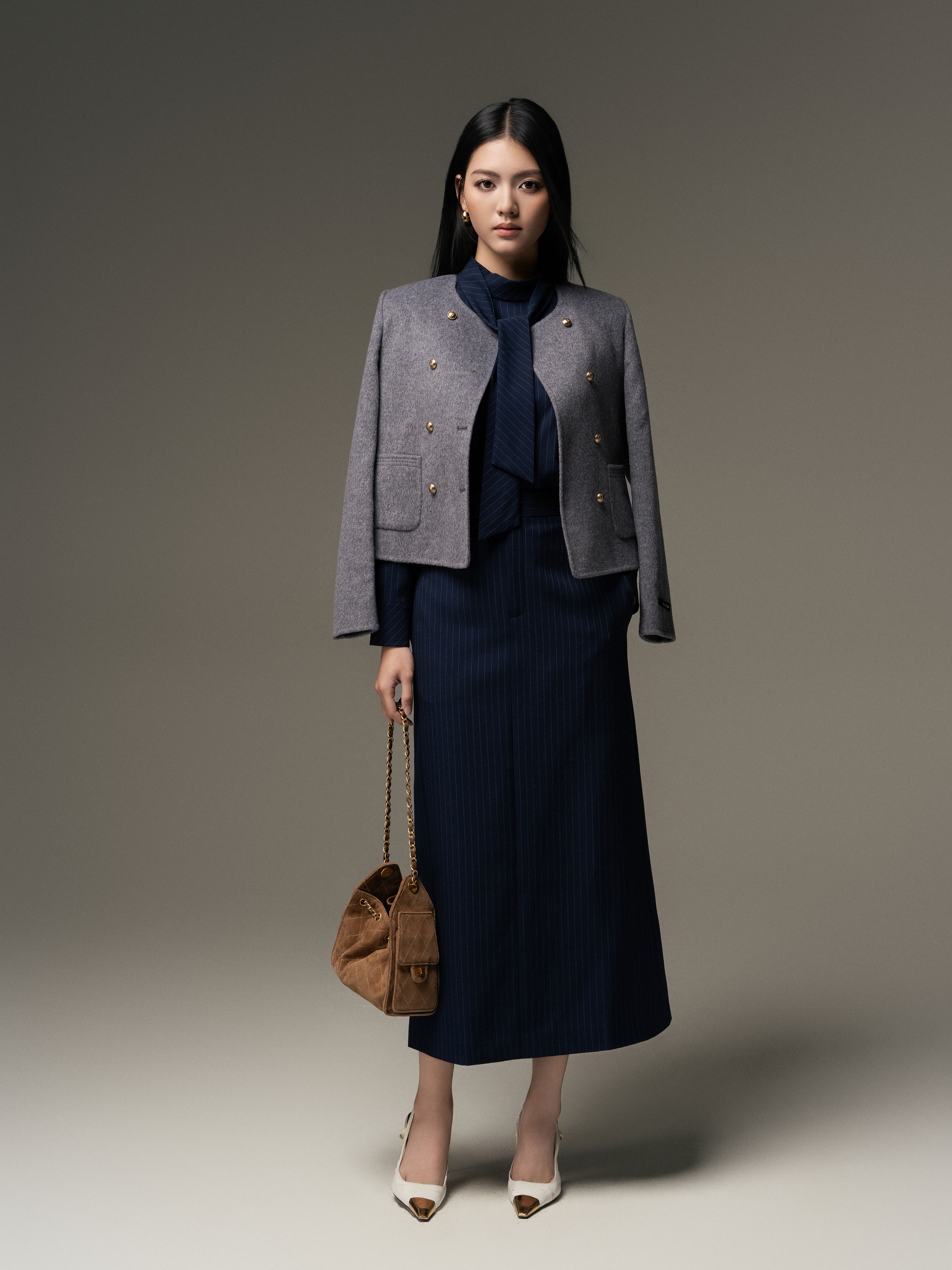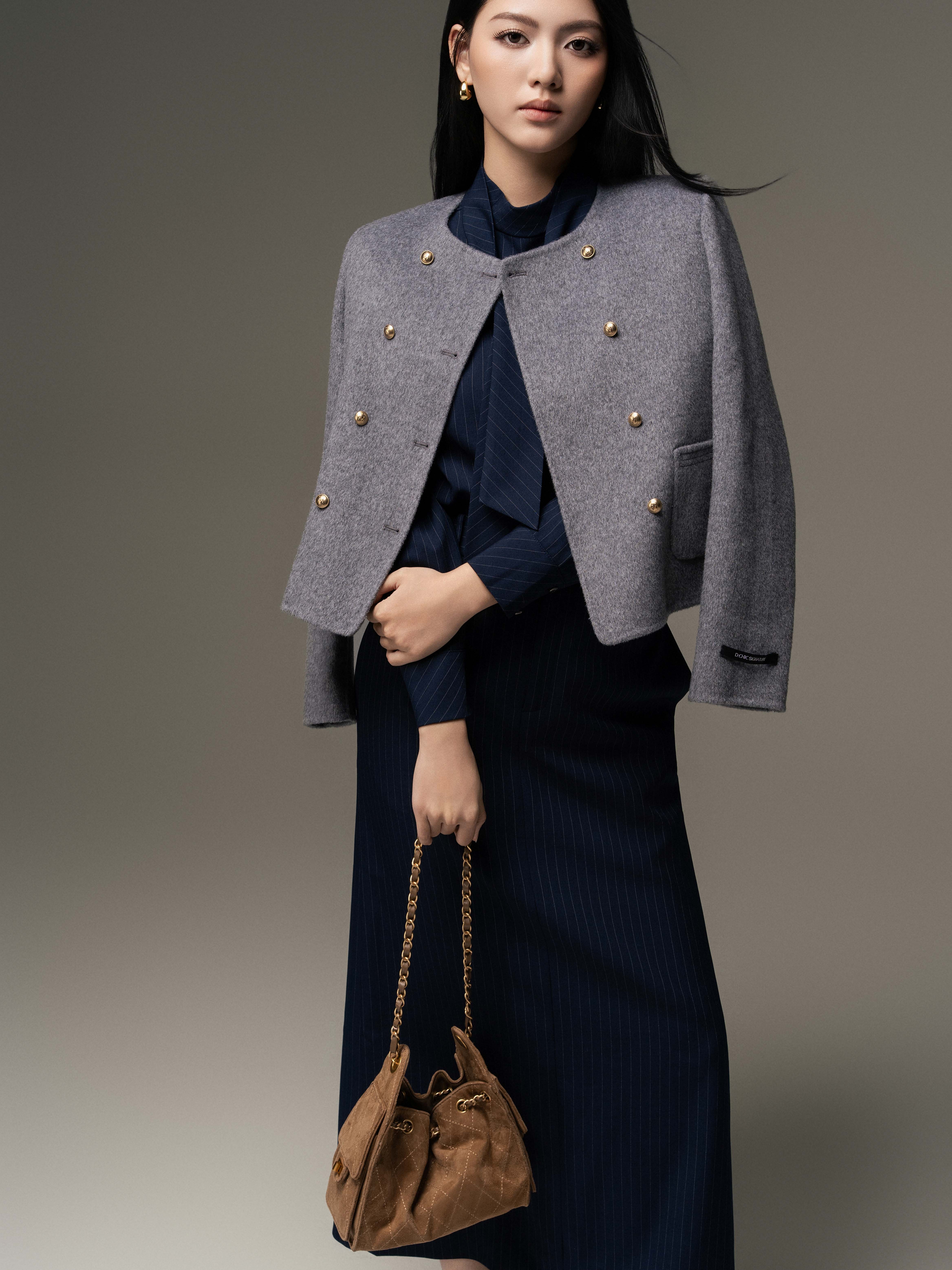 Áo dạ handmade 2 túi ốp trước 2 hàng cúc