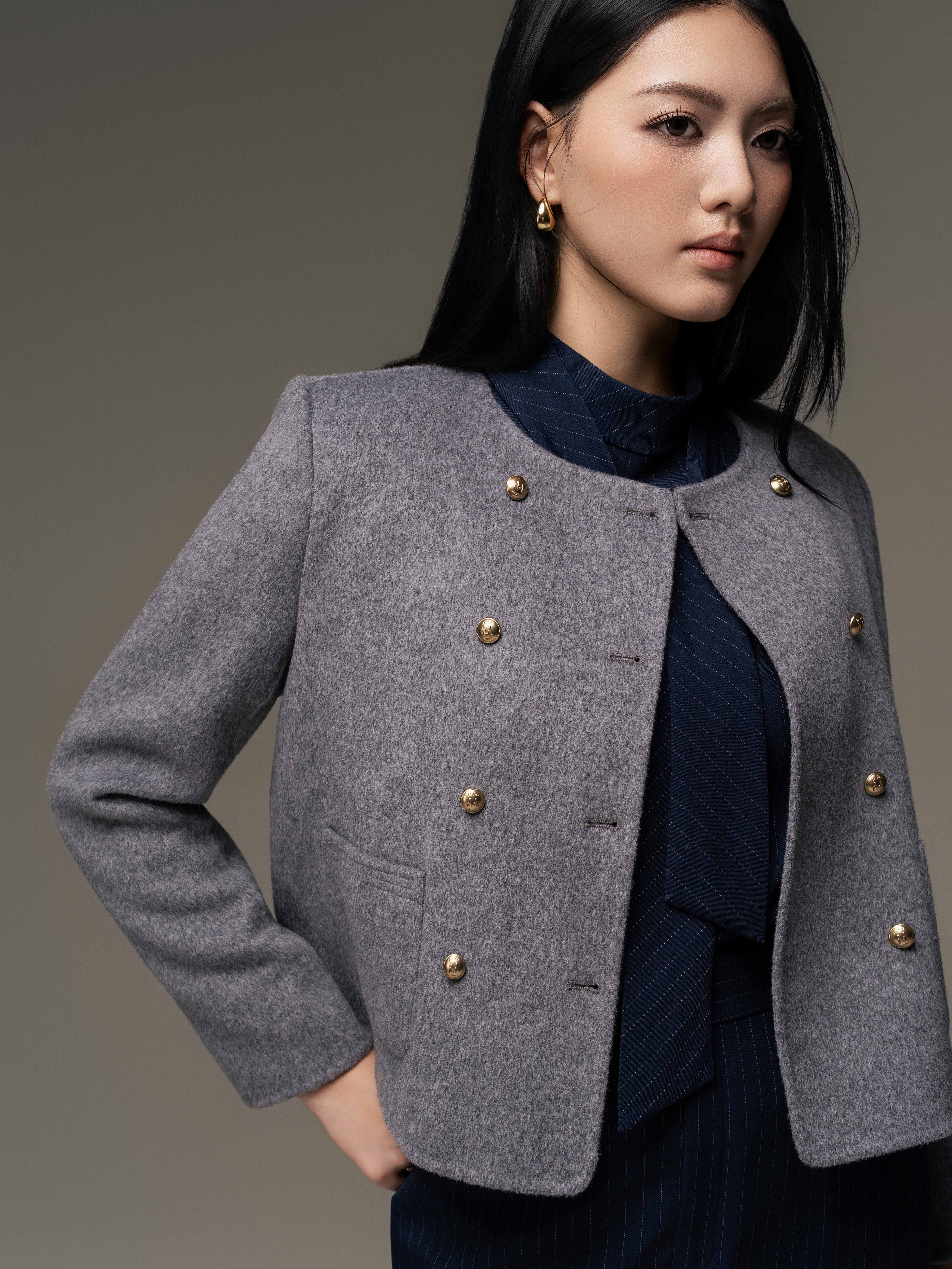 Thông tin Chất liệu:- Độ co giãn: Co giãn nhẹ- Chất liệu chính: DạChi tiết Kiểu dáng:- Form dáng: Vừa- Kiểu cổ: Cổ tròn- Lót: Polyester- Kiểu tay: Tay dài- Chiều dài: Tiêu chuẩn- Túi: Túi ốp trang tríThông tin Thiết kế:- Dịp sử dụng: Công sở/ Đi làm/ Dạo phố- Họa tiết: Màu trơn- Chi tiết thiết kế: Đính cúc kim loại, Áo dạ handmade 2 túi ốp trước 2 hàng cúc