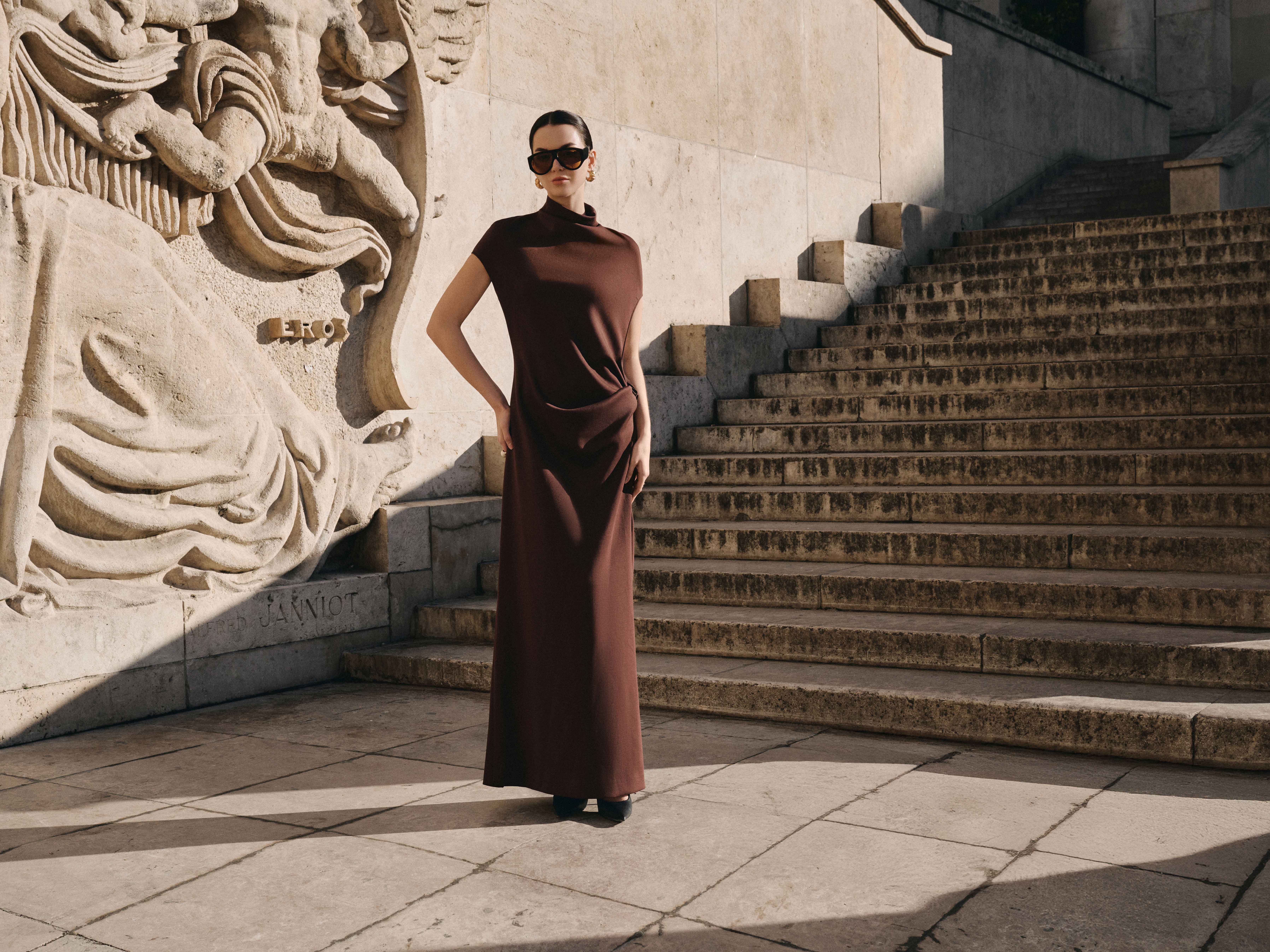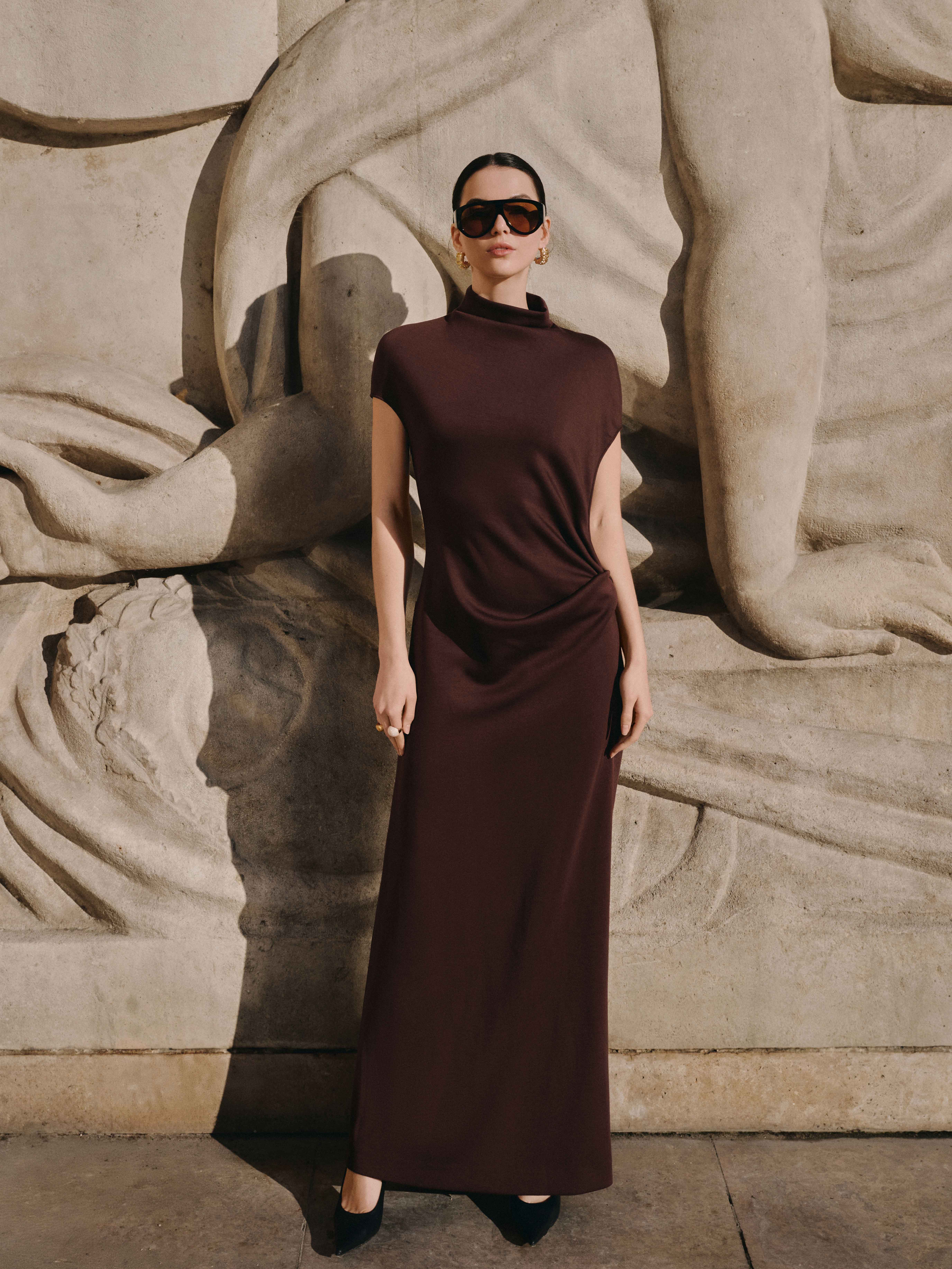 - Chi tiết thiết kế: Chi tiết chiết eo xếp nếp lượn sóng.
