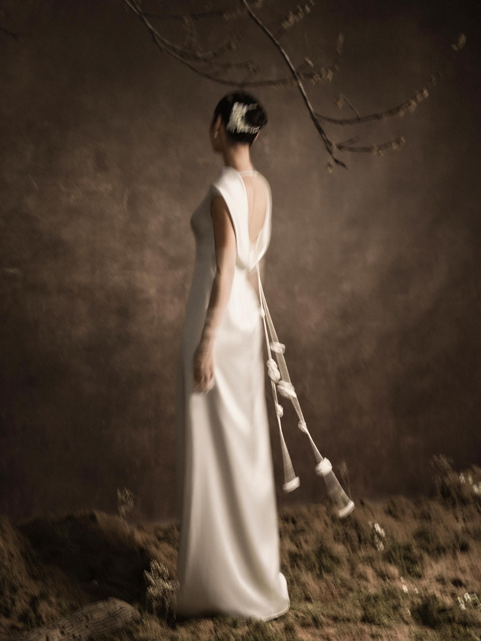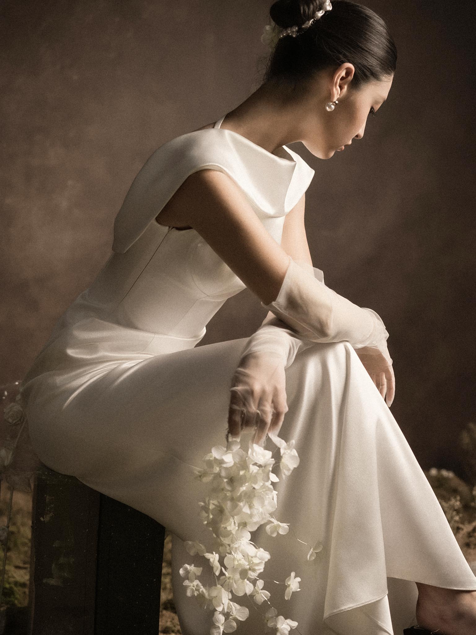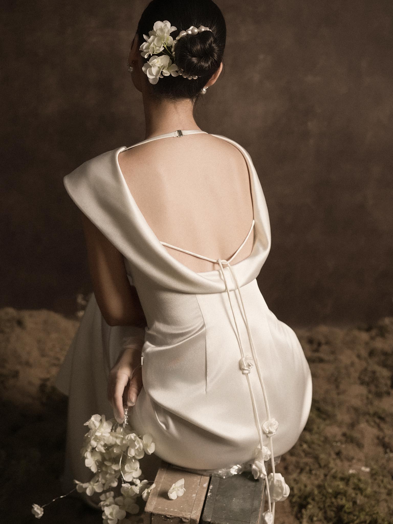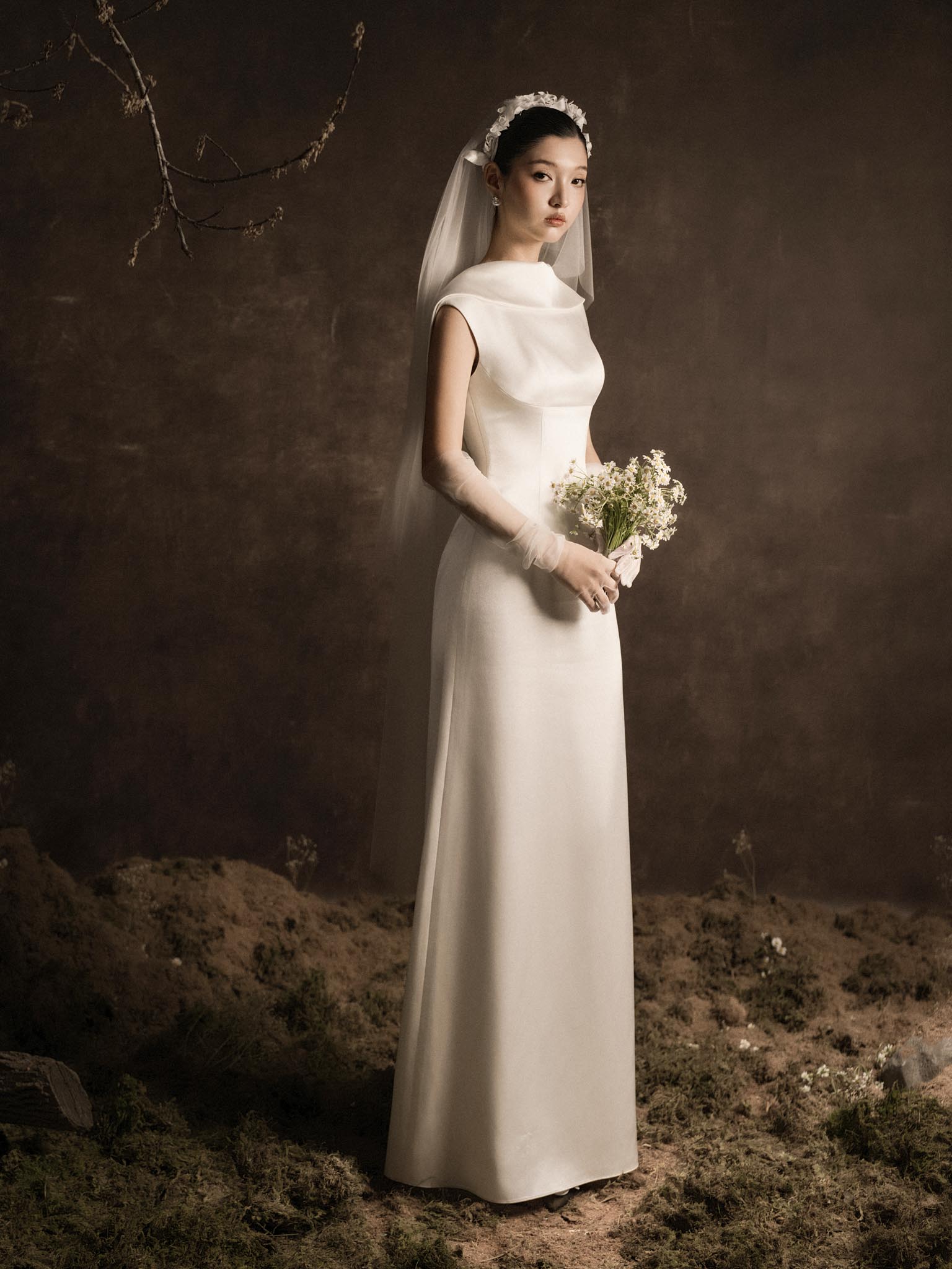 Váy lụa dáng dài cổ thuyền khoét lưng