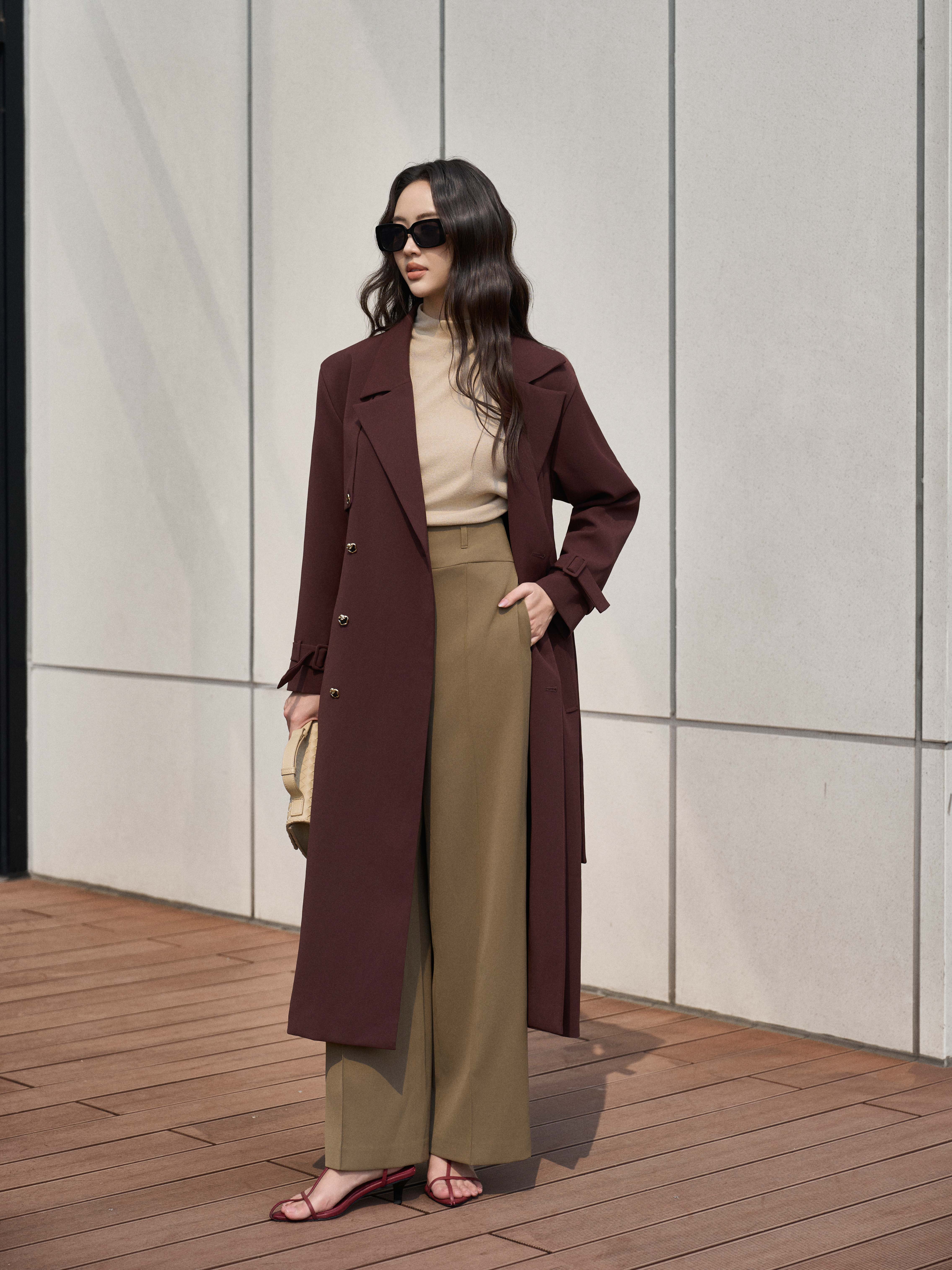- Chi tiết thiết kế: Áo trendcoat cổ bẻ đai bản to