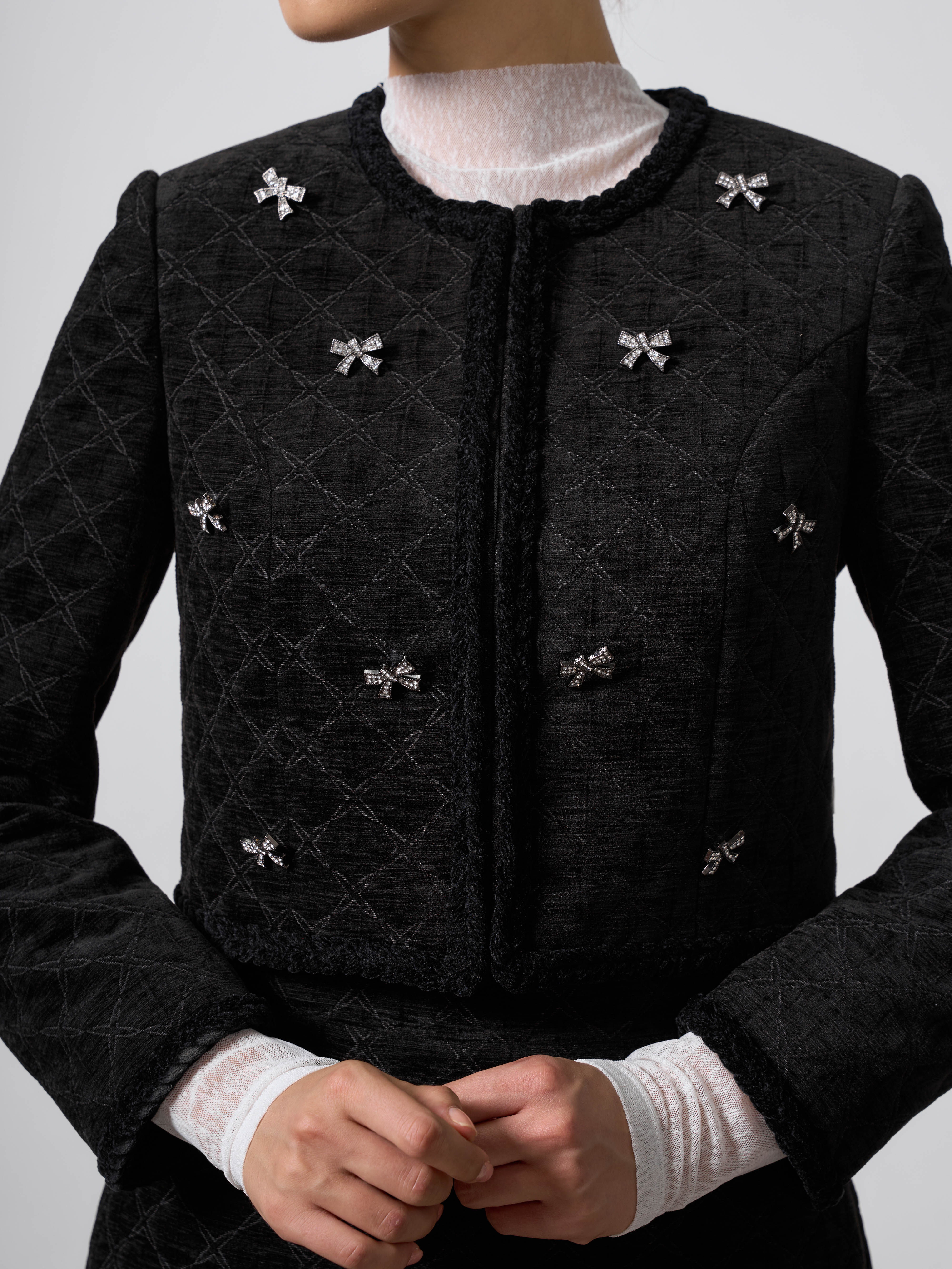 Áo vest nhung quả trám dáng ngắn đính nơ